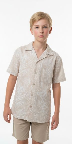 Rhodes Kids Unisex Linen Shirt - Beige Shadow Palm
