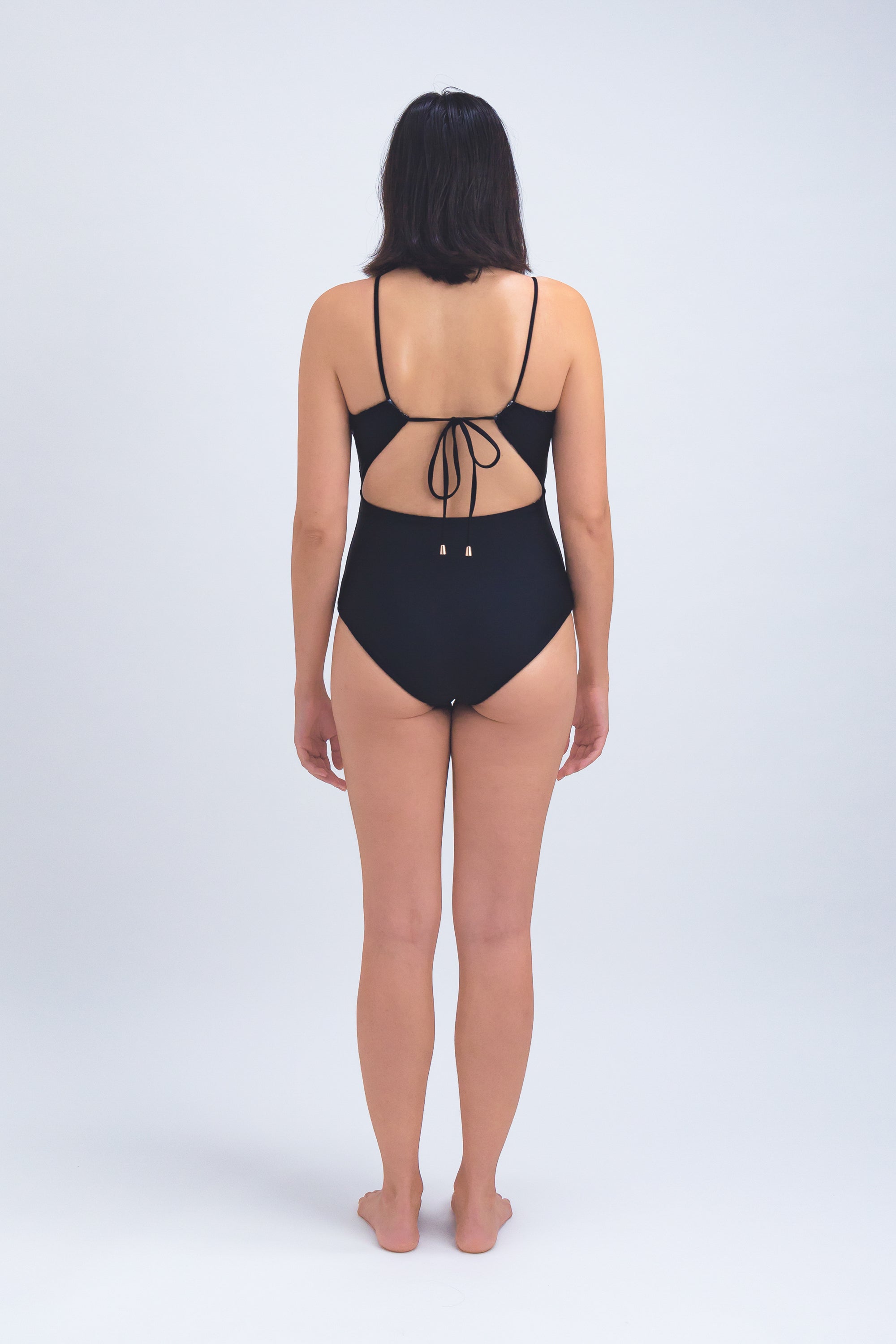 Product listing: reversible one-piece swimsuit, string tie swimsuit, sustainable swimwear, one-piece bathing suit, eco-friendly swimsuit, women’s swimwear