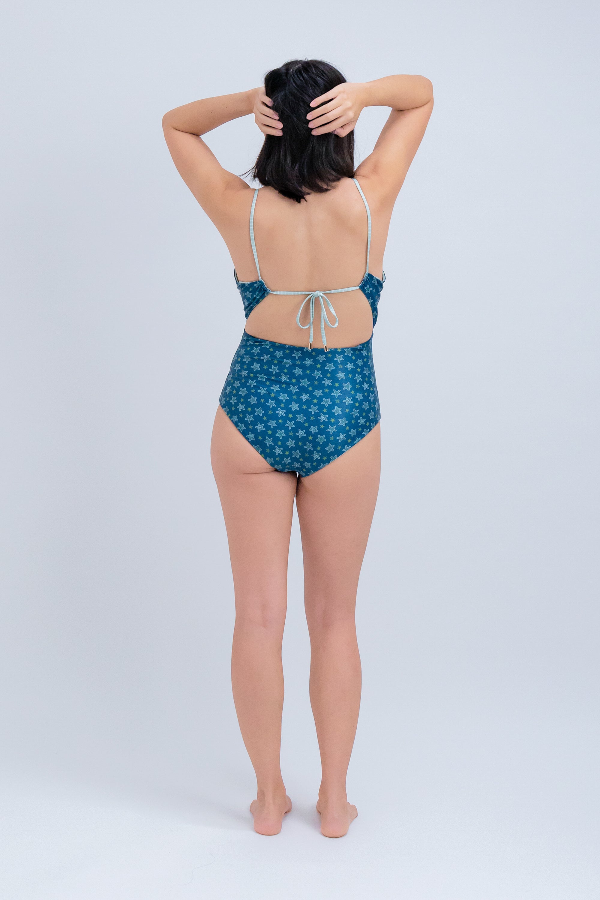 Meia Reversible String Tie One Piece - Starfish/Green Shoreline
