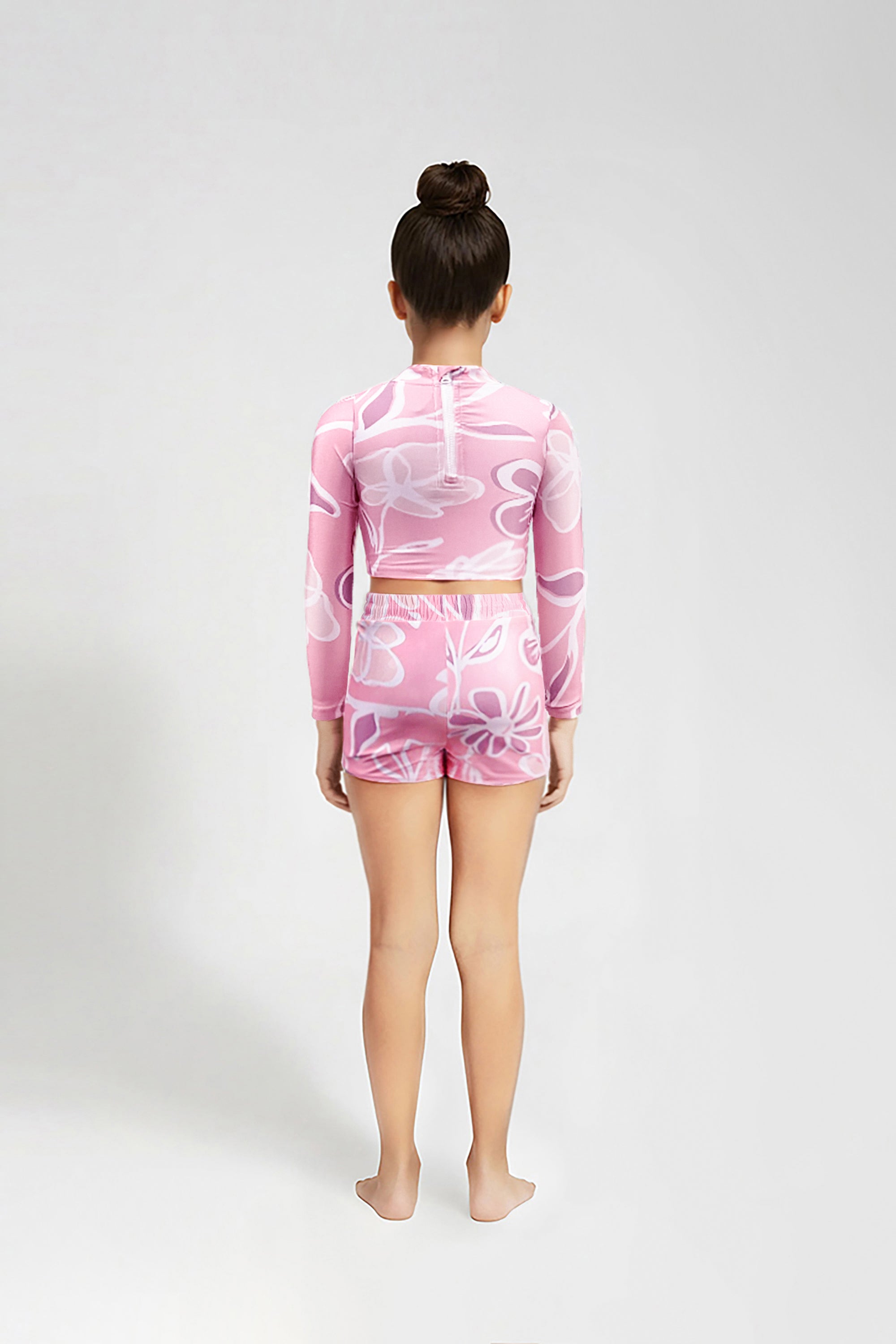 Makena Girls Long Sleeve Crop Rash Guard - Bloom