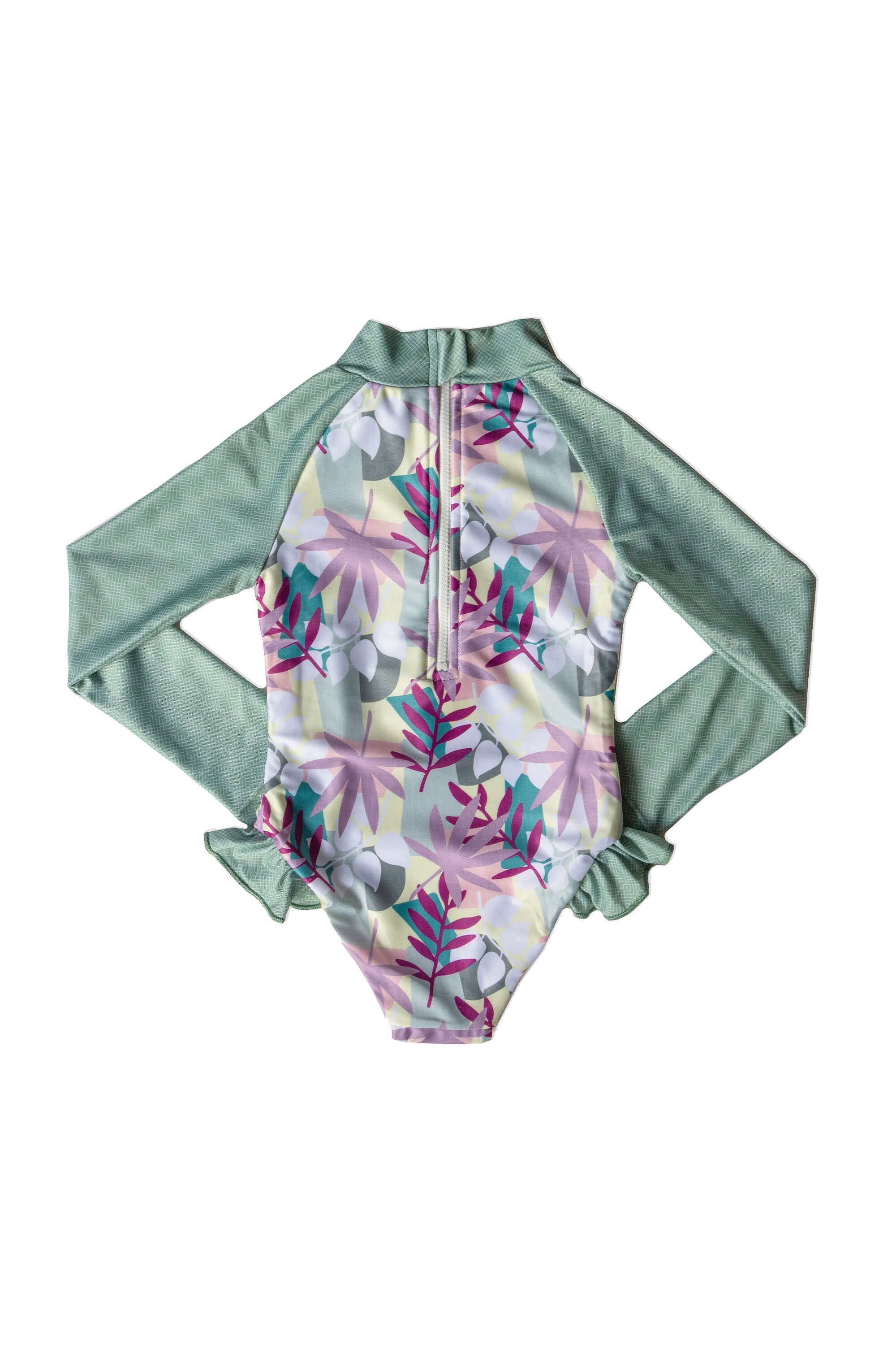 Coral Girls' Long Sleeve Swimsuit - Jardin / Diamonds Green
